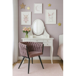 Černý toaletní kosmetický stůl na líčení se zrcadlem, zásuvkami a taburetem
