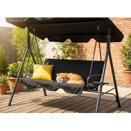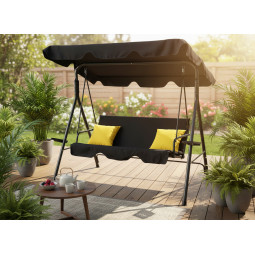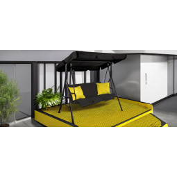 Kvalitní zahradní houpačka v černé barvě se žlutými polštářky