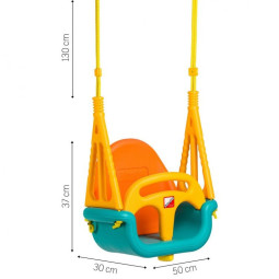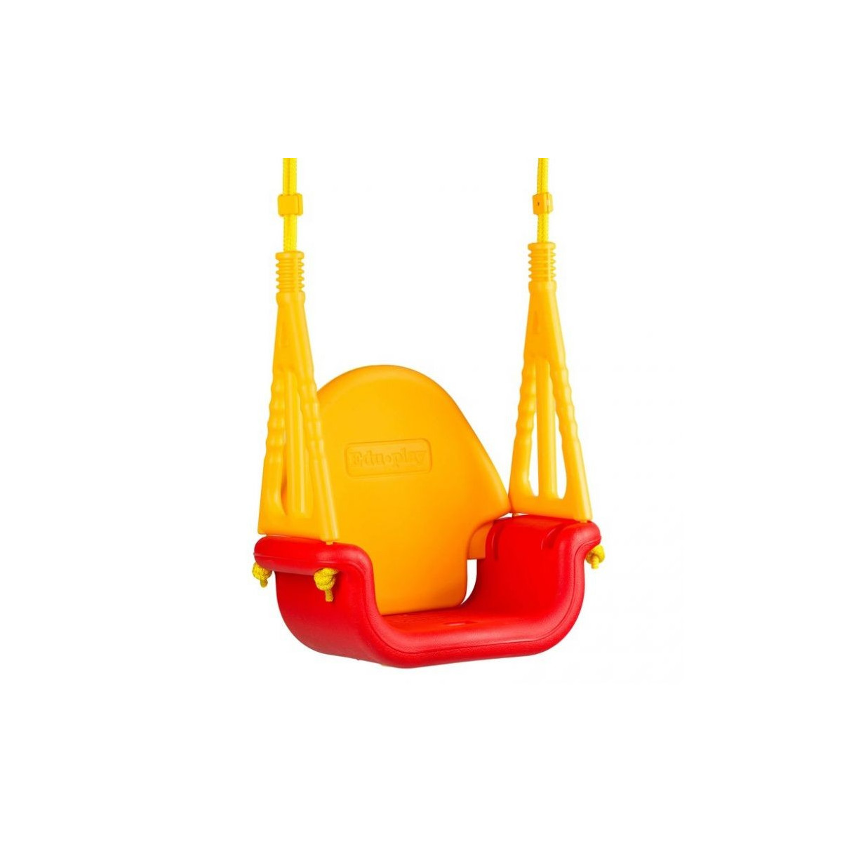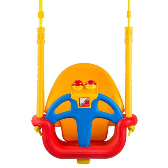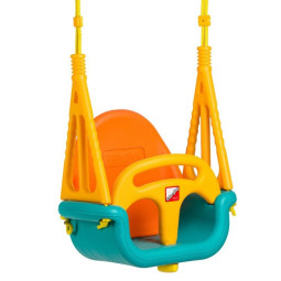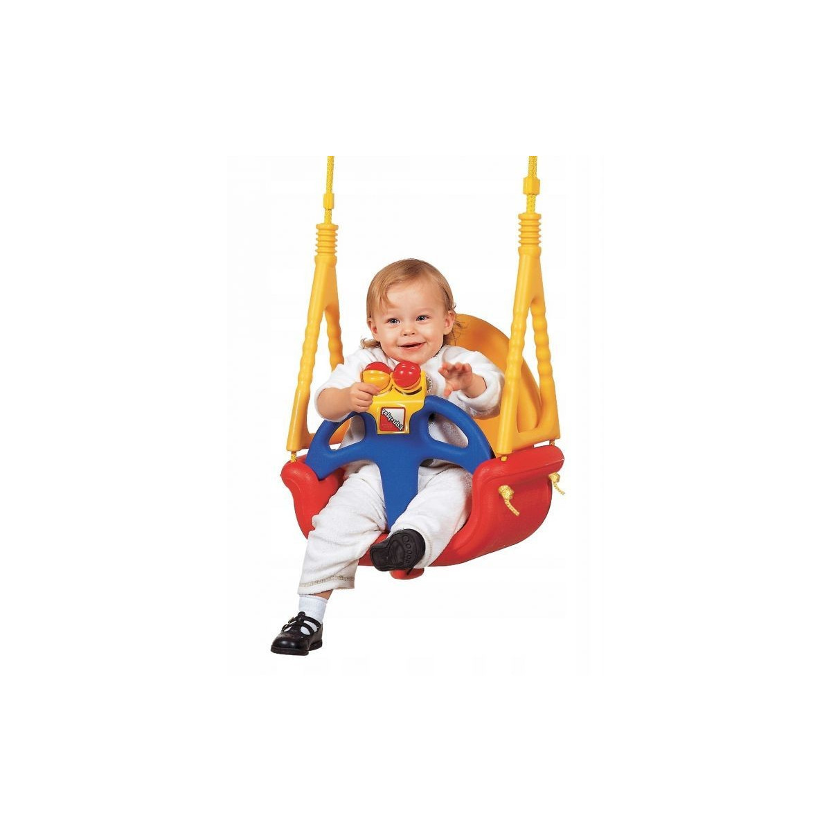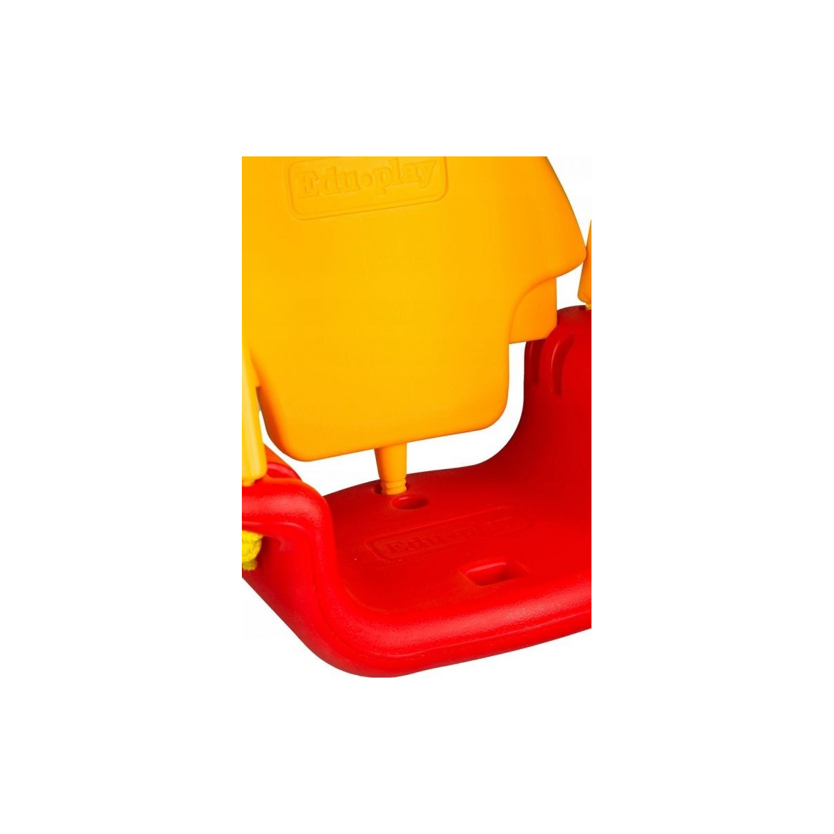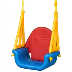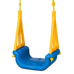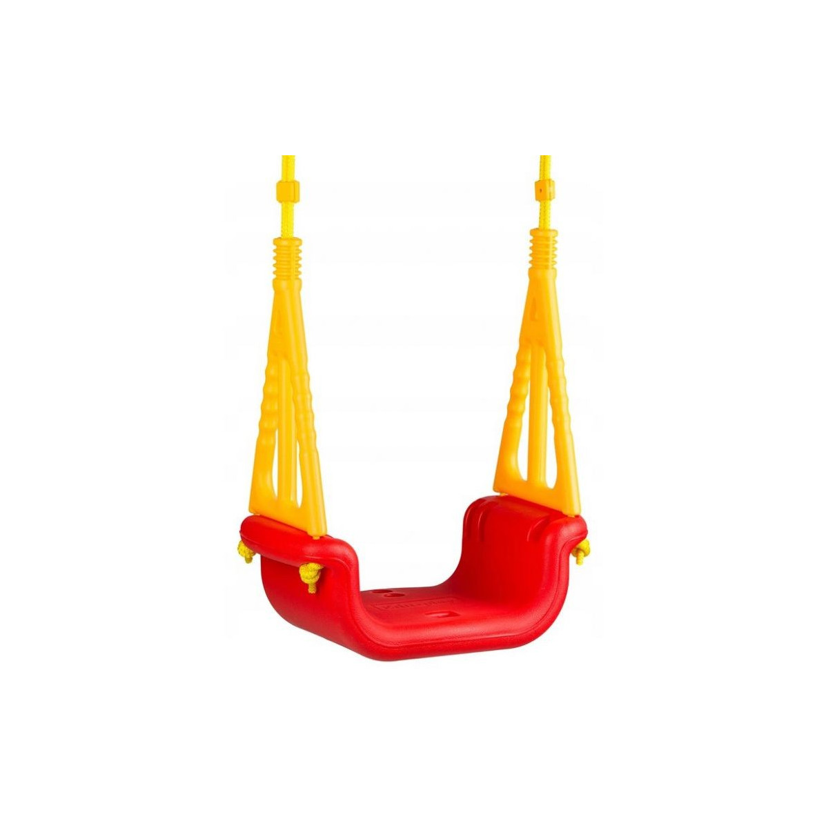 Houpací sedačka je vyrobena z kvalitních materiálů, díky čemuž je odolná vůči povětrnostním vlivům. Konstrukce je přizpůsobena ke změně jejích funkcí: houpací košík s jištěním, houpací sedačka s opěrkou, houpací sedačka jen se sedákem. Upevňovací lana (asi 130 cm) houpací sedačky jsou délkově nastavitelné a speciální závěsy po stranách hračky chrání dětské ručičky.