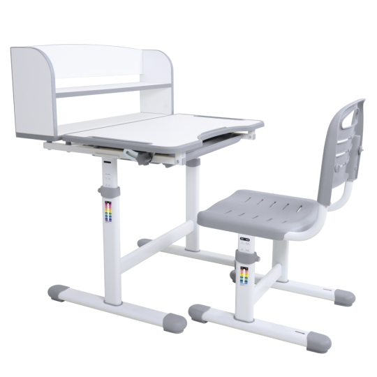Rostoucí set ZION se stolem a ergonomickou židlí je ideální pro děti od 3 do 12 let. Nastavitelná výška, sklopná deska a praktické úložné prostory zajišťují pohodlí při učení i kreslení.