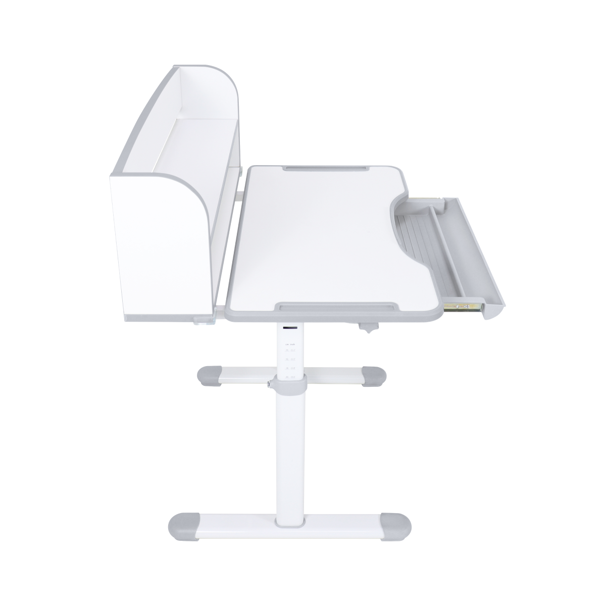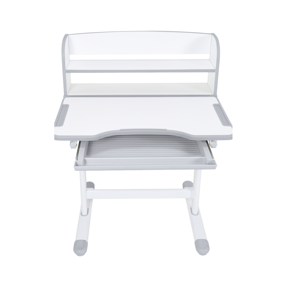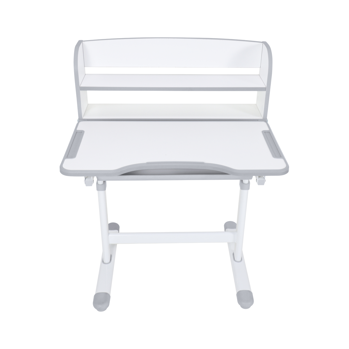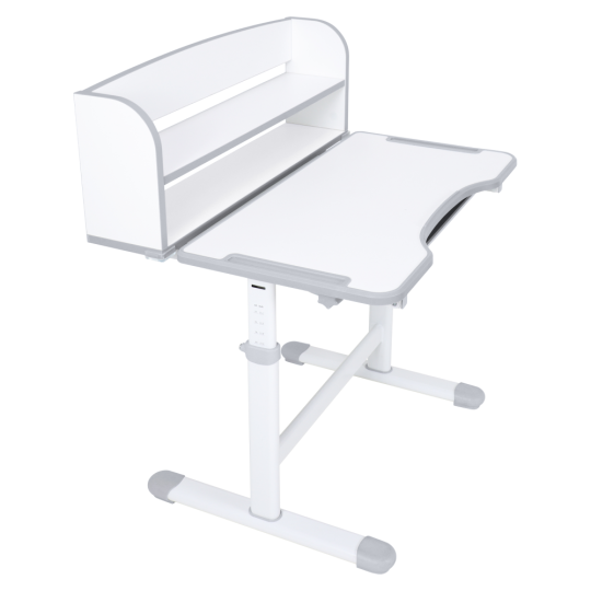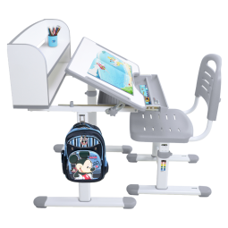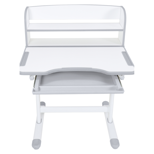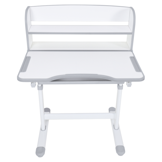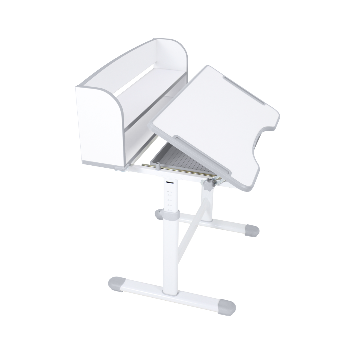 Stůl umožňuje nastavení výšky i sklonu desky až do 40°, což zvyšuje komfort při psaní, čtení i kreslení. Nechybí praktické přihrádky, zásuvka a police na uskladnění školních potřeb či knih.