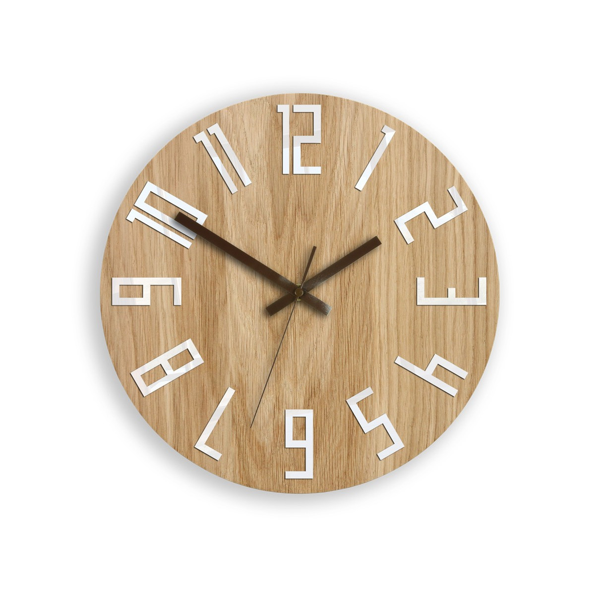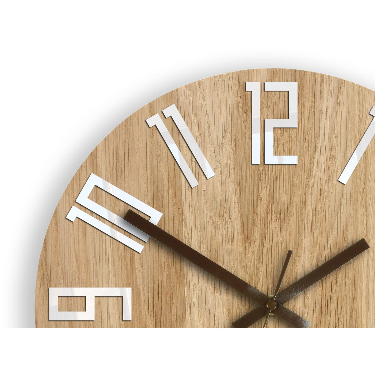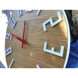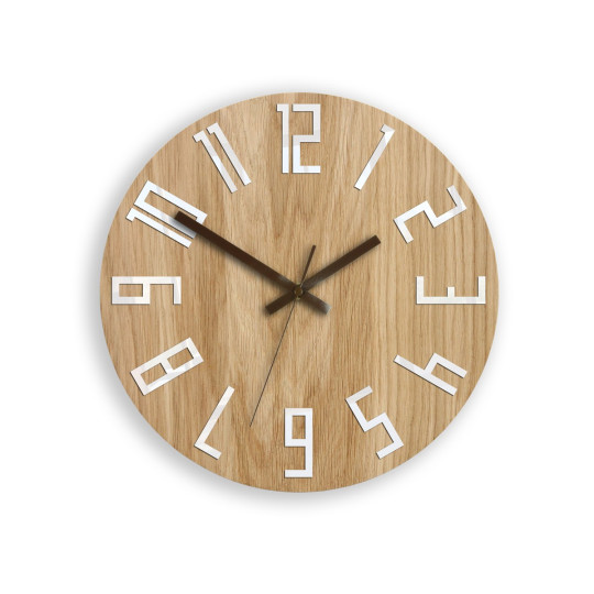 Hodiny jsou vyrobeny ze 100% přírodního dubu a MDF desky. Vrstva ciferníku je 100% dubová - proto žádné dvě hodiny nejsou stejné. Zrnitosť dřeva je v každých hodinách jiná. Hodiny jsou napuštěny přírodním včelím voskem. Občas se mohou vyskytnout malé uzlíky.