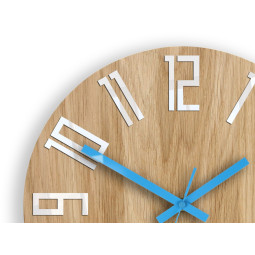 Dřevěné hodiny s dubovým ciferníkem se stříbrnými zrcadlovými číslicemi a modrými indexy. Jejich jednoduchost a krása uchvátí každého, kdo se na ně podívá. Originální dekorace do obývacího pokoje, kanceláře a je to hezký tip na dárek. Hodiny jsou zabalené v elegantní krabičce.