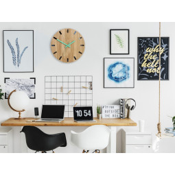 Dřevěné hodiny s dubovým ciferníkem se stříbrnými zrcadlovými číslicemi a modrými indexy. Jeho jednoduchost a krása uchvátí každého, kdo se na něj podívá. Originální dekorace do obývacího pokoje, kanceláře a je to hezký tip na dárek. Hodiny jsou zabalené v elegantní krabičce.