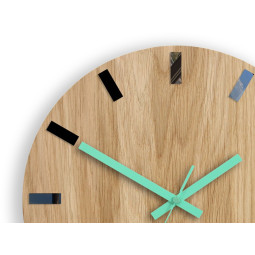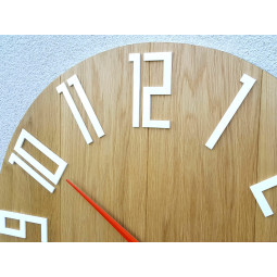 Hodiny jsou vyrobeny ze 100% přírodního dubu a MDF desky. Vrstva ciferníku je 100% dubová - proto žádné dvě hodiny nejsou stejné. Zrnitost dřeva je u každých hodin jiná. Hodiny jsou napuštěny přírodním včelím voskem. Občas se mohou vyskytnout malé uzlíky.