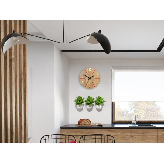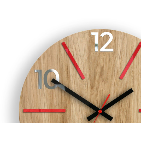Nadčasové dřevěné hodiny AKSEL MIRROR - červená 33 cm