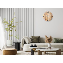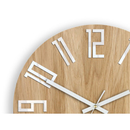 Nástěnné hodiny jsou vyrobeny z 3mm dubu a 10mm mdf, jsou masivní a propracované každým centimetrem. To jim dodává velmi elegantní a stylový charakter. Na druhé straně dřevěné hodiny, dnes tak módní a ochotně volené, odkazují na přírodu a skandinávský styl.