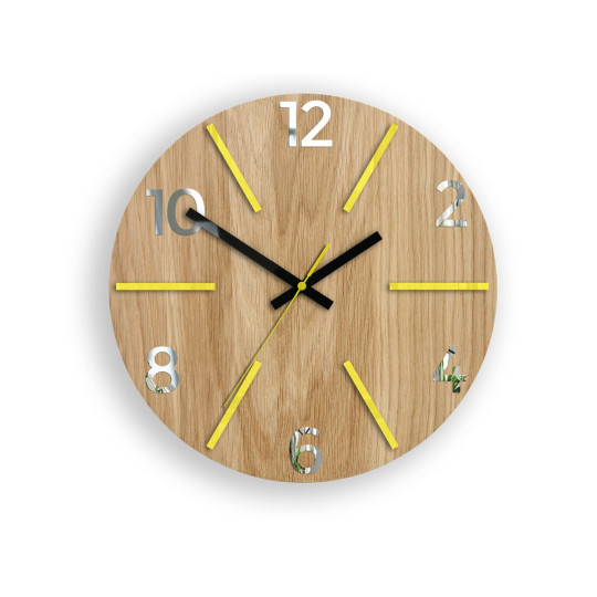 Nadčasové dřevěné hodiny AKSEL MIRROR - žlutá 33 cm