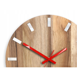 Dřevo je přírodní produkt a protože je každý kus jedinečný, barva a kresba se mohou lišit od fotografií. Každý strom je jiný. Žádné hodiny nevypadají stejně. Hodiny jsou napuštěny přírodním včelím voskem. Vzhledem k přirozené povaze dřeva se občas mohou vyskytnout malé uzly.