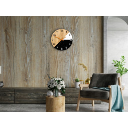 Nástěnné hodiny jsou vyrobeny z 3mm dubového dřeva a 10mm mdf desky, zdobeny ručičkami v krásné živé barvě, což jim dodává velmi elegantní a šik charakter. Na druhé straně dřevěné hodiny, dnes tak módní a ochotně zvolené, odkazují na přírodu a skandinávský styl.