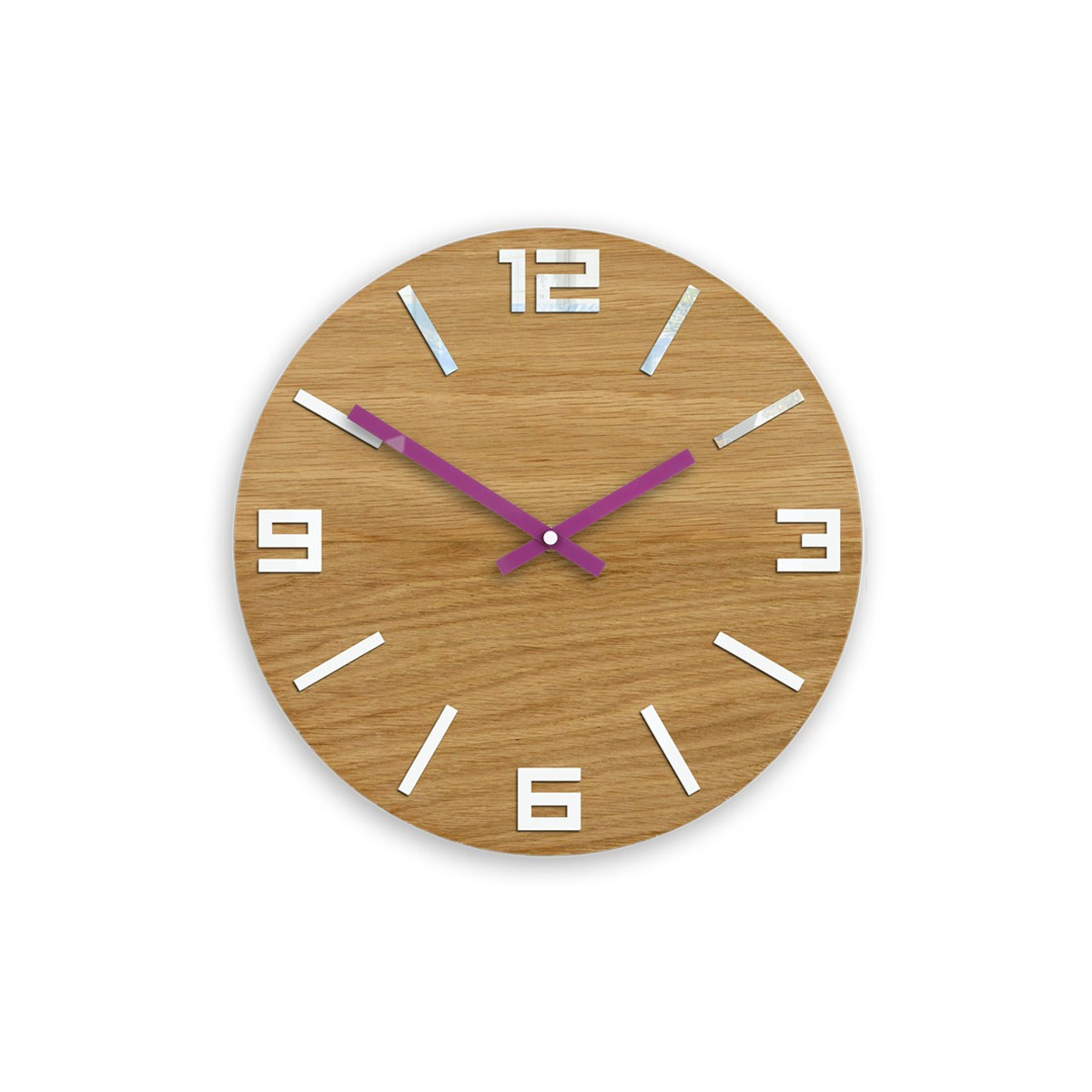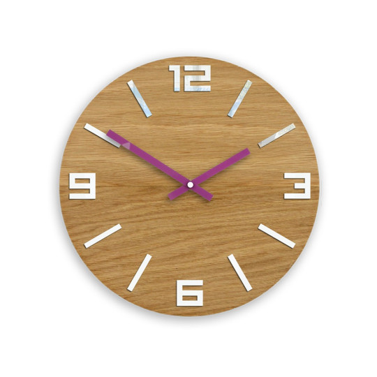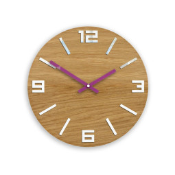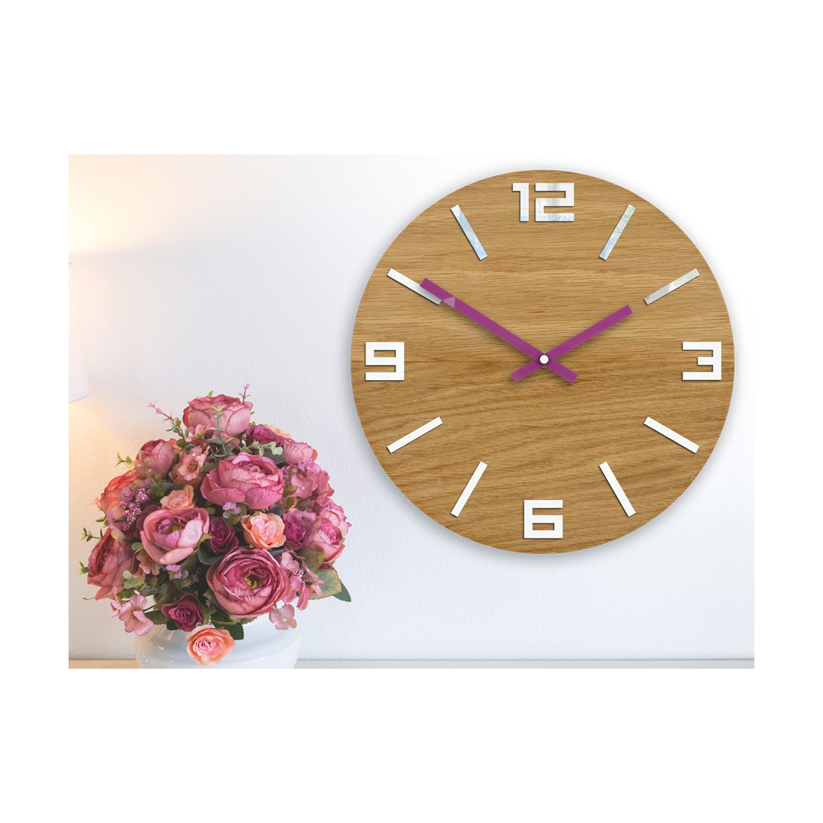 Moderní dřevěné hodiny ARABIC - bílá/fialová 33 cm
