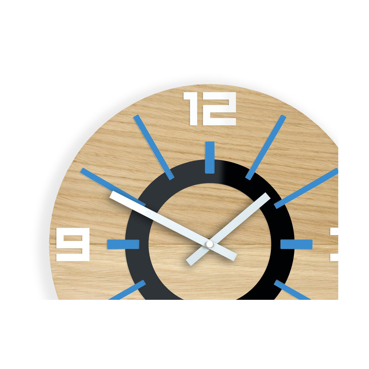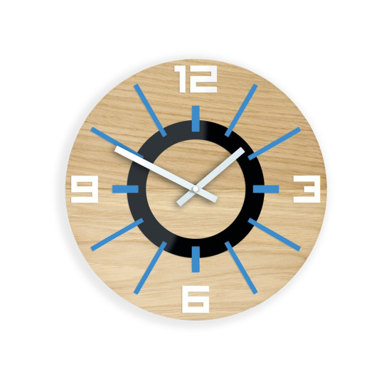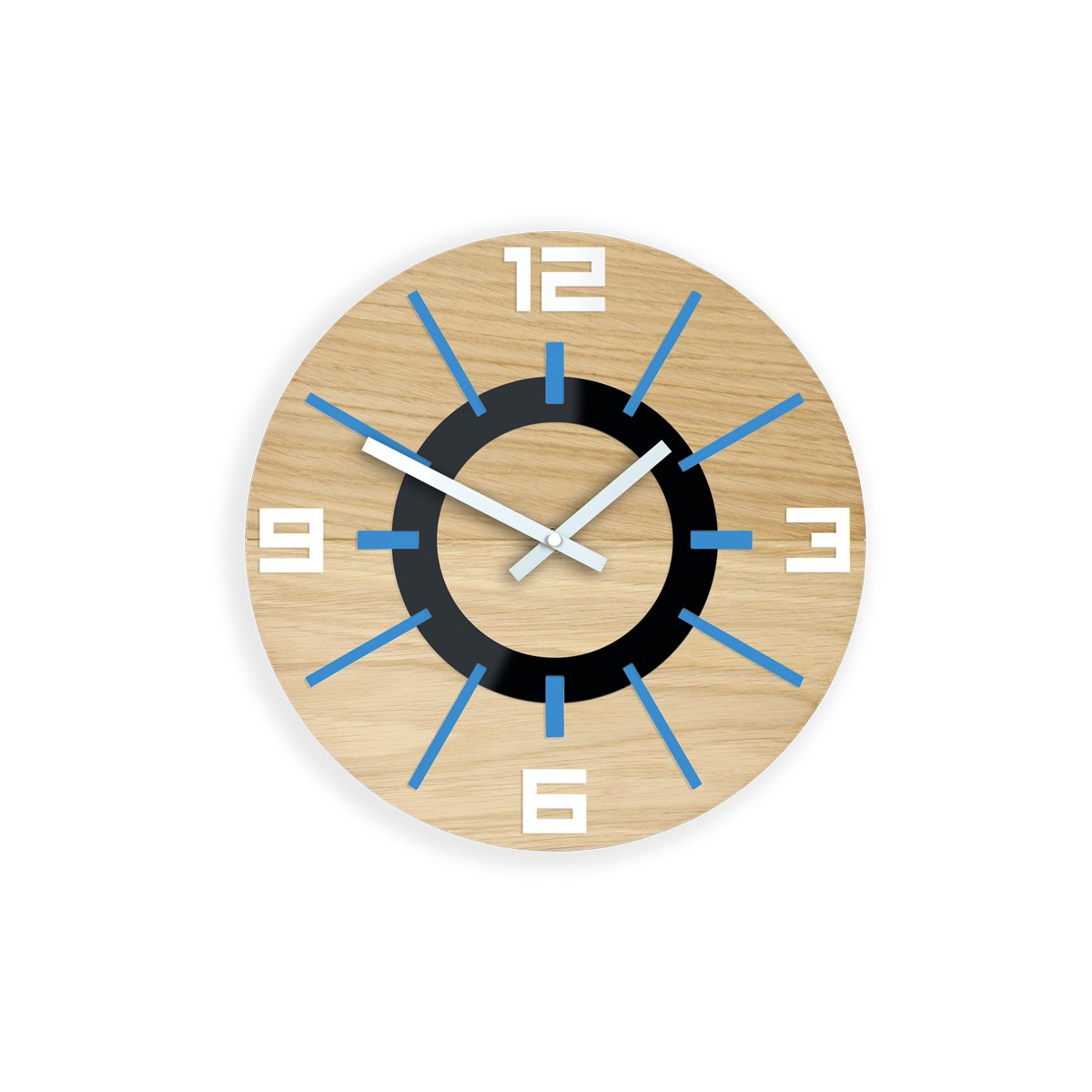 Kvalitní dubové nástěnné hodiny ALLADYN - modrá 33 cm