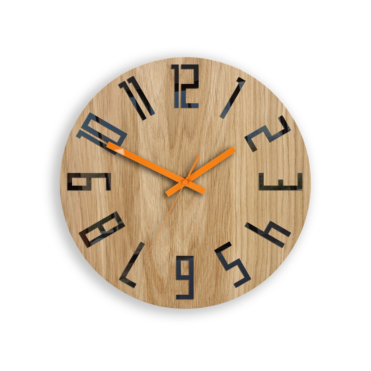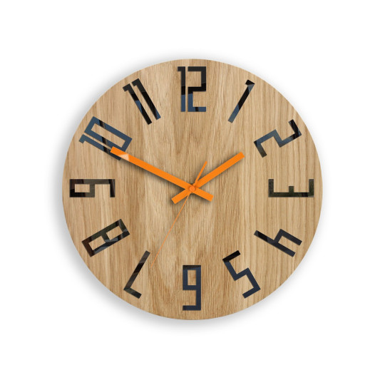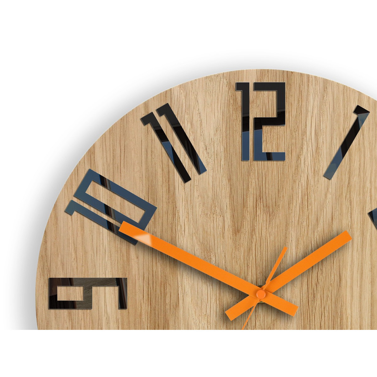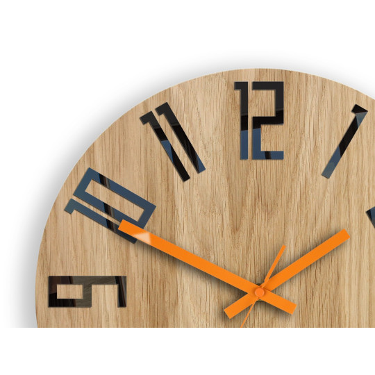 Dubové nástenné hodiny SLIM - černá/oranžová 33 cm