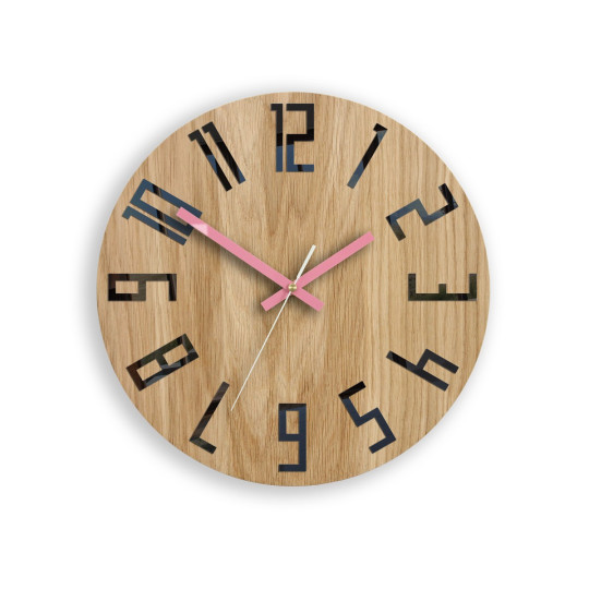 Dubové nástenné hodiny SLIM- černá/růžová 33 cm