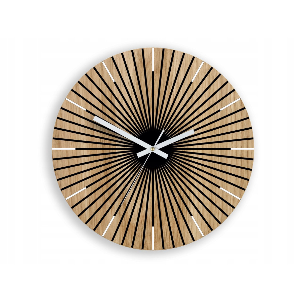 Jedinečné a moderní nástěnné hodiny vyrobené z dubového dřeva. Mají klasický kulatý ciferník se zajímavou grafikou. Tyto hodiny jsou obvykle dekorativní a perfektně zapadnou do každého interiéru. Ciferníky zdobí dvě ručičky a bílá sekundová ručička. Tyto hodiny jsou skvělým tipem na dárek. Každý kus je zabalen v elegantní dárkové krabičce.