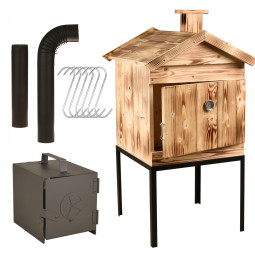Dřevěná dvoukomorová udírna s plechovou střechou + Dárek