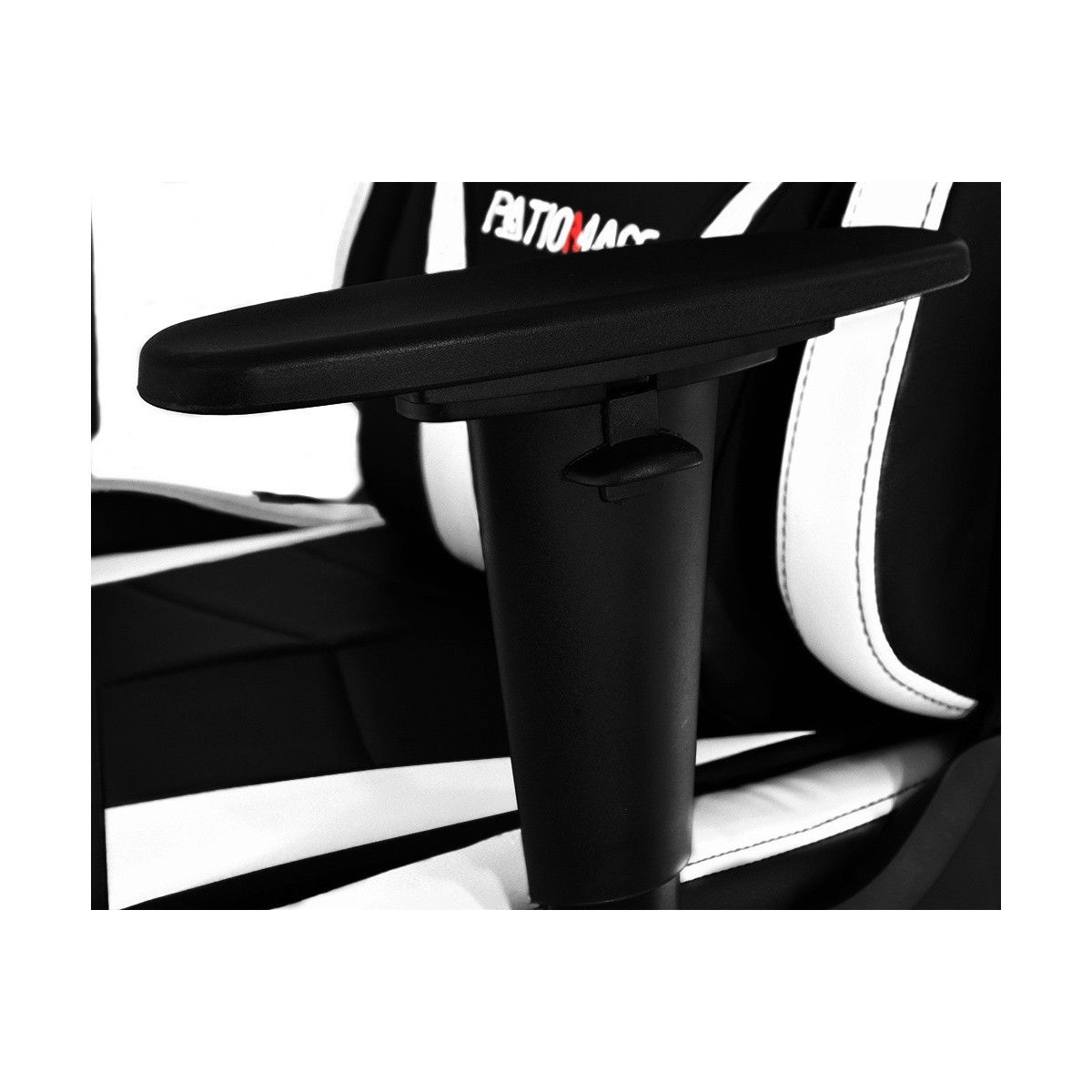 Pohodlné herní křeslo umocňuje herní zážitek a zároveň poskytuje polohu vhodnou pro záda. Můžete si nastavit výšku a sklonit opěradlo. Opěrka hlavy a bederní polštář jsou odnímatelné, výškově nastavitelné jsou i područky. Křeslo je vyrobeno z kvalitní odolné PU kůže a zajišťuje vysoký komfort sezení. Plynulý chod kol a maximální zatížení 136 kg jsou dalšími přednostmi této herní židle. Čalounění z kvalitní PU kůže zajišťuje absolutní komfort při práci, hraní a učení. Příjemnou pevnost a stabilitu poskytuje i hlavní materiál, polykarbonát.