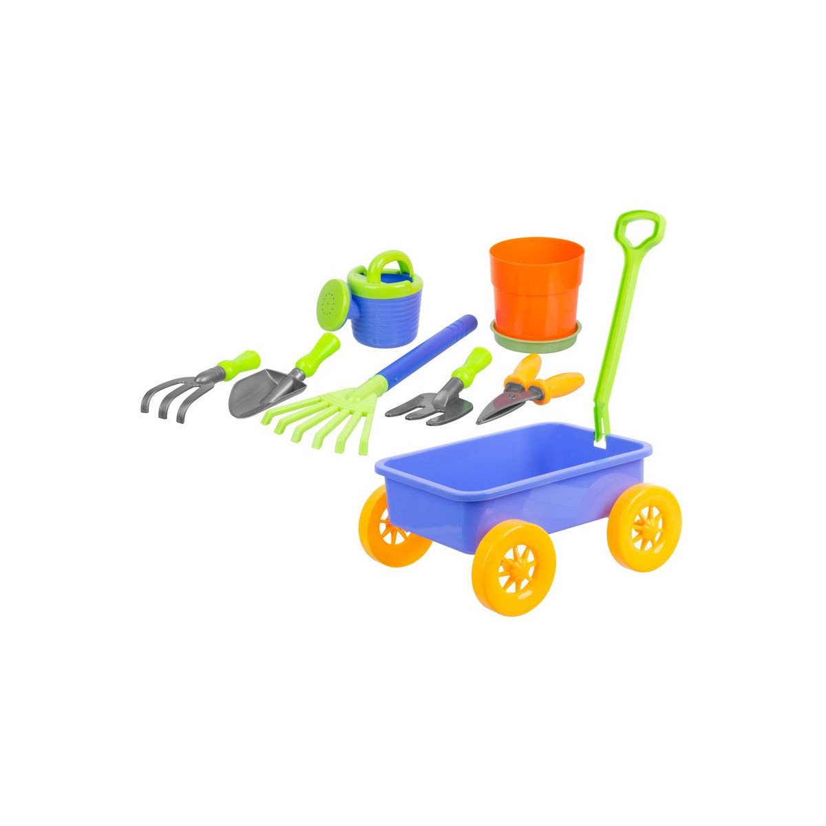 - Obsah balení: vozík, konvička, květináč s podložkou, hrabičky (2x), lopatka, vidlice (2x), nůžky