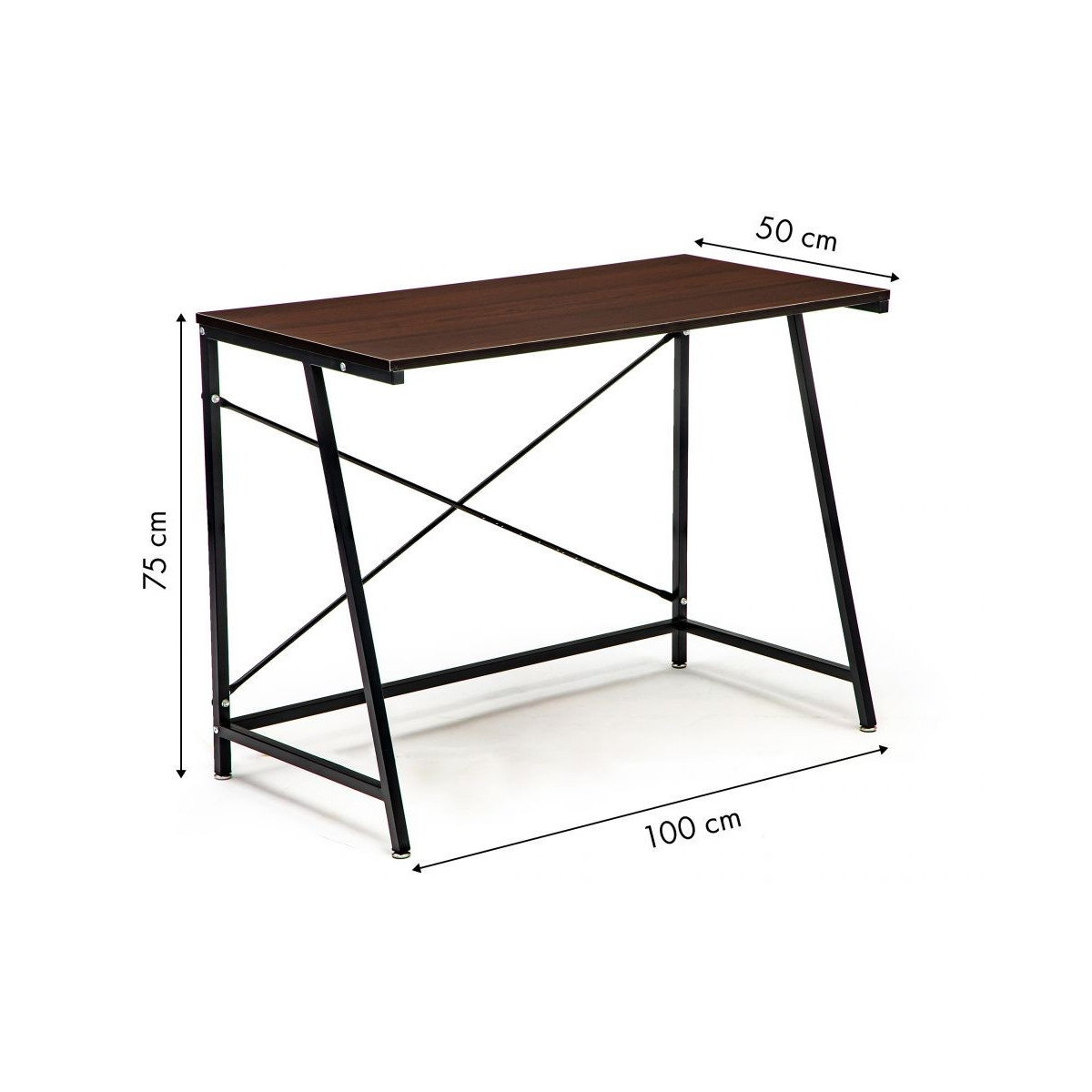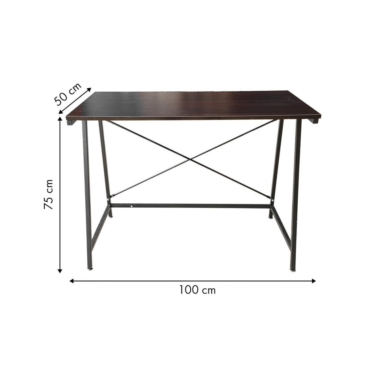 Stabilní kovová konstrukce, která byla dodatečně zpevněna v kombinaci s tmavohnědým vrchem, vytváří elegantní celek. Psací stůl ideálně využijete v kanceláři, studiu nebo v pokoji teenagera.