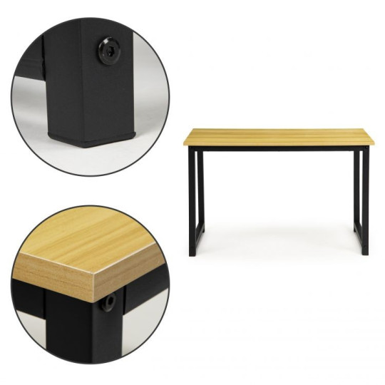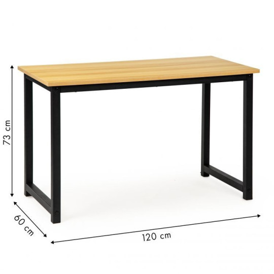 Deska stolu je vyrobena z laminované desky o tloušťce 20 mm. Ideální pro domácí kancelář, studentský pokoj nebo obývací pokoj. Laminovaný povrch desky stolu je odolný vůči každodennímu používání, např. odolnost proti poškrábání a skvrnám. Stůl má silné kovové nohy, které zaručují stabilitu při práci.
