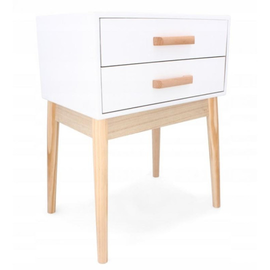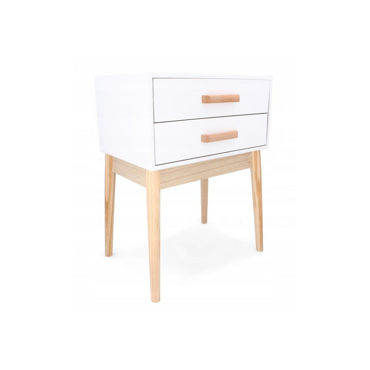 Skandinávský noční stolek v bílé barvě se 2 zásuvkami