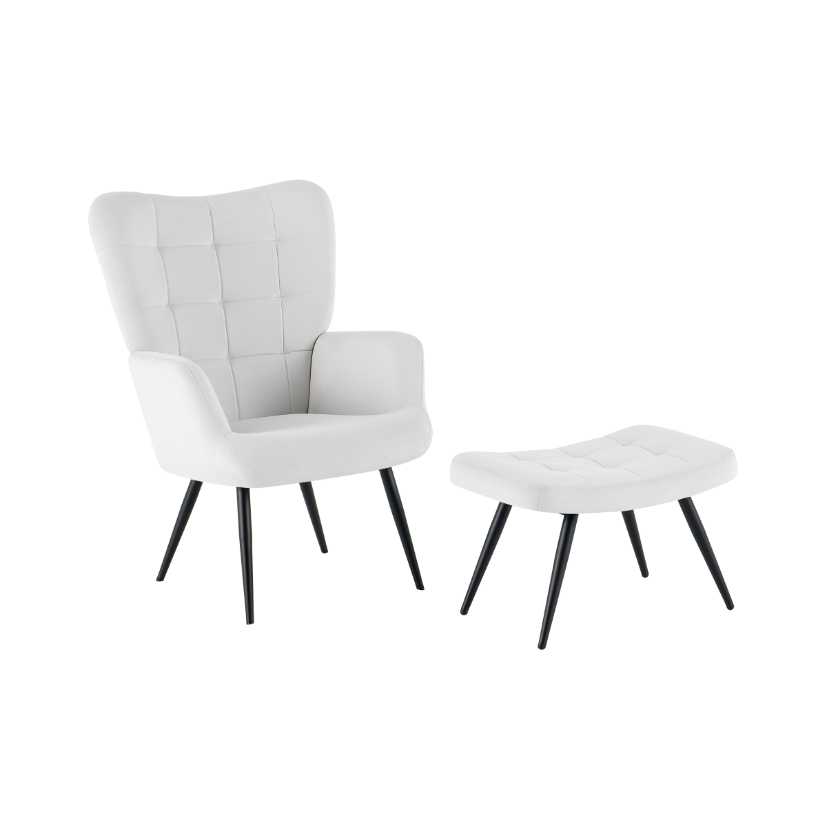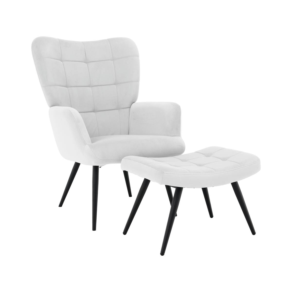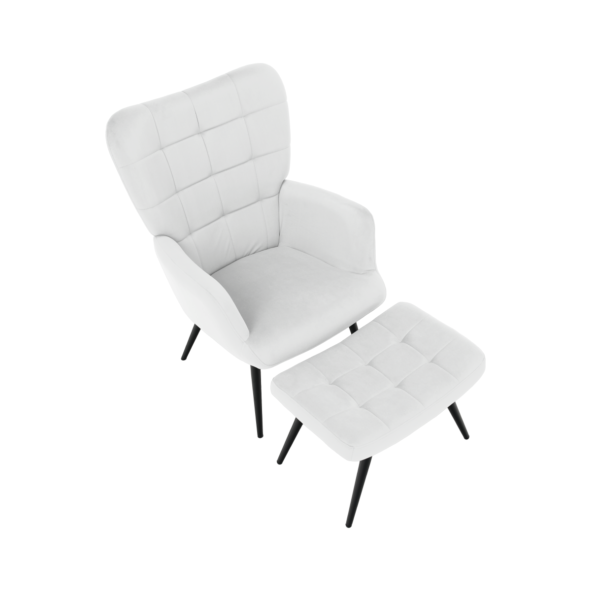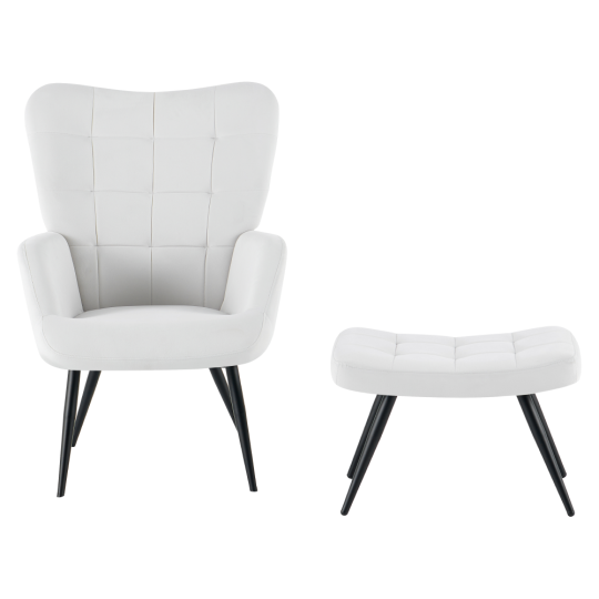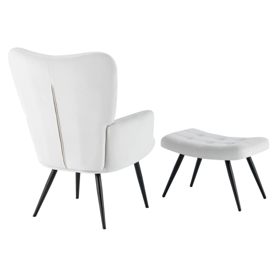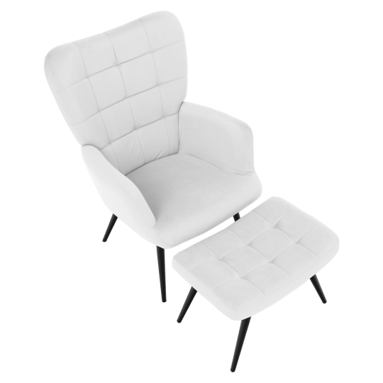 Moderní křeslo HABEN se světle šedým sametovým potahem a podnožkou nabízí vysoký komfort a elegantní design. Díky pevné kovové konstrukci a prošívaným detailům je ideální na každodenní relaxaci.