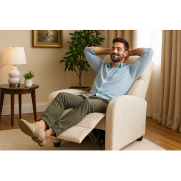 Pohodlné sezení zajišťuje ergonomicky tvarované opěradlo a dostatečně hluboké sedadlo. Součástí křesla je praktická podnož, která umožňuje pohodlné vyložení nohou a podporuje maximální relaxaci při každodenním používání.