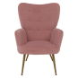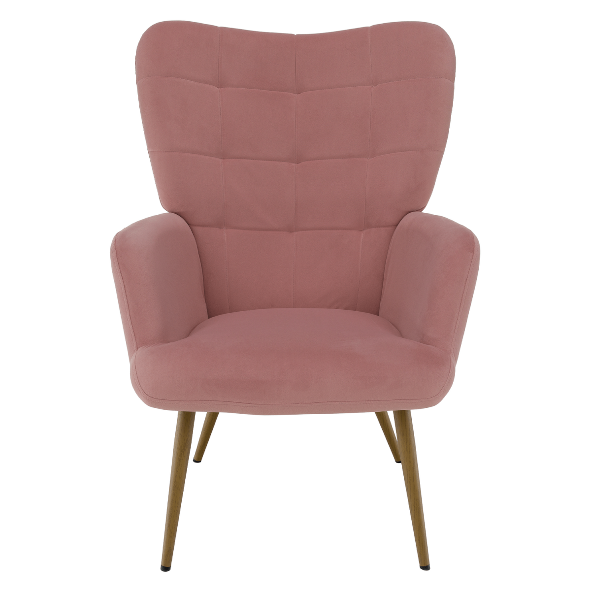 Elegantní křeslo HABEN v růžovém sametovém provedení s podnožkou nabízí maximální pohodlí a moderní design. Stabilní kovová konstrukce v dekoru dubu a prošívané detaily z něj dělají stylový doplněk do každého interiéru.