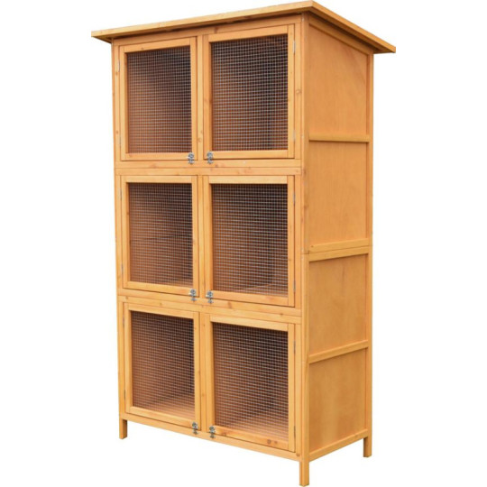 Vícepatrové králíkárny se střechou 116 × 60 × 180 cm nabízejí prostorné a přehledné ustájení pro králíky a drobné zvířata. Díky třem samostatným podlažím šetří místo a zároveň poskytují dostatek prostoru pro bezpečný chov v exteriéru.