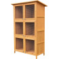 Králíkárna se střechou (116 × 60 × 180 cm) je praktická vícepatrová dřevěná klec navržená pro efektivní a organizovaný chov králíků či jiných drobných zvířat. Díky vertikálnímu řešení nabízí tři samostatné úrovně s oddělenými boxy, což umožňuje přehledné rozdělení zvířat podle potřeby.