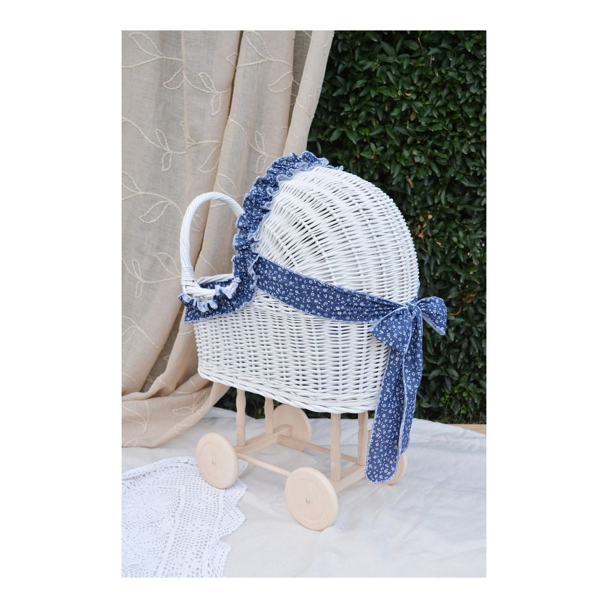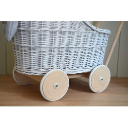 Krásný a jedinečný proutěný kočárek pro panenky.