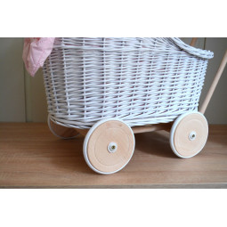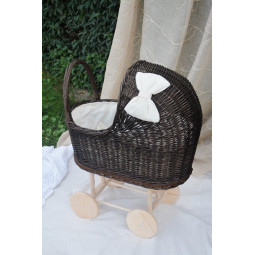 Krásný a jedinečný proutěný kočárek pro panenky.