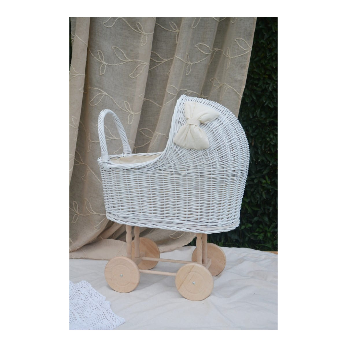 - Každý kočárek je dodáván s povlečením (polštářek a peřinka) a volánkem + vázacím mašlí (vnější část kočárku).