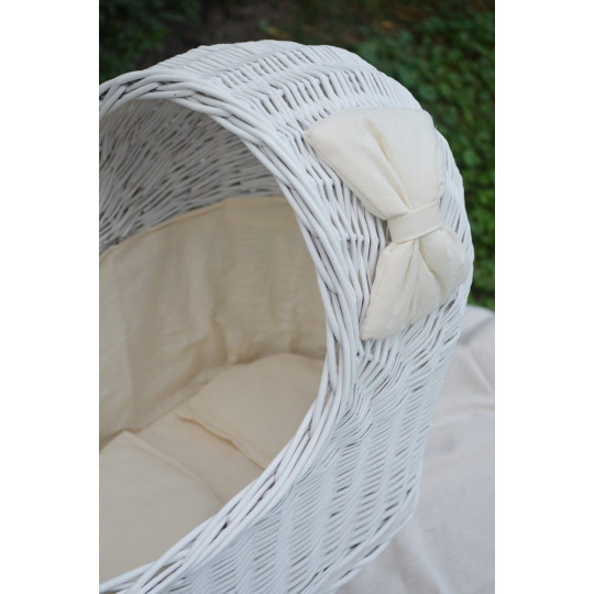 Proutěný retro dětský kočárek v bílé barvě
