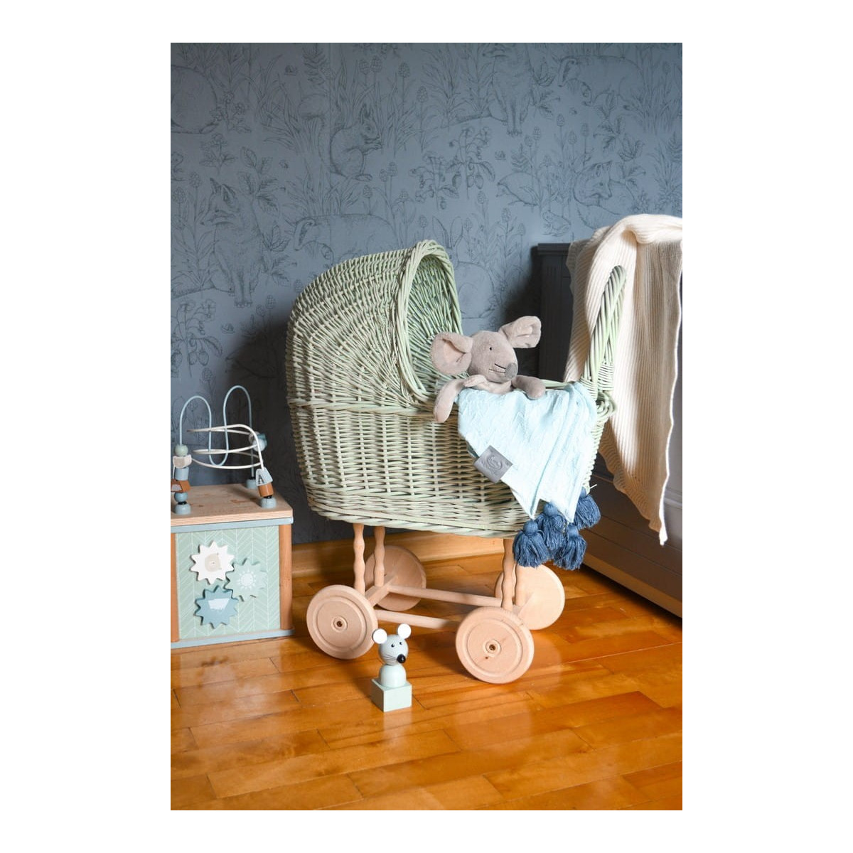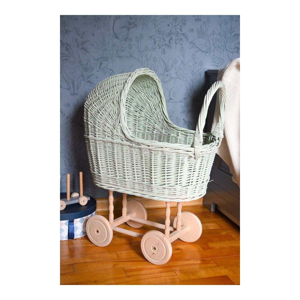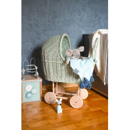 Zelený proutěný kočárek pro panenky za super cenu