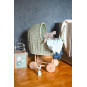 - Krásný a jedinečný kočárek pro panenky v pastelově šedé barvě.