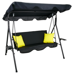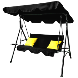 Kvalitní zahradní houpačka v černé barvě se žlutými polštářky