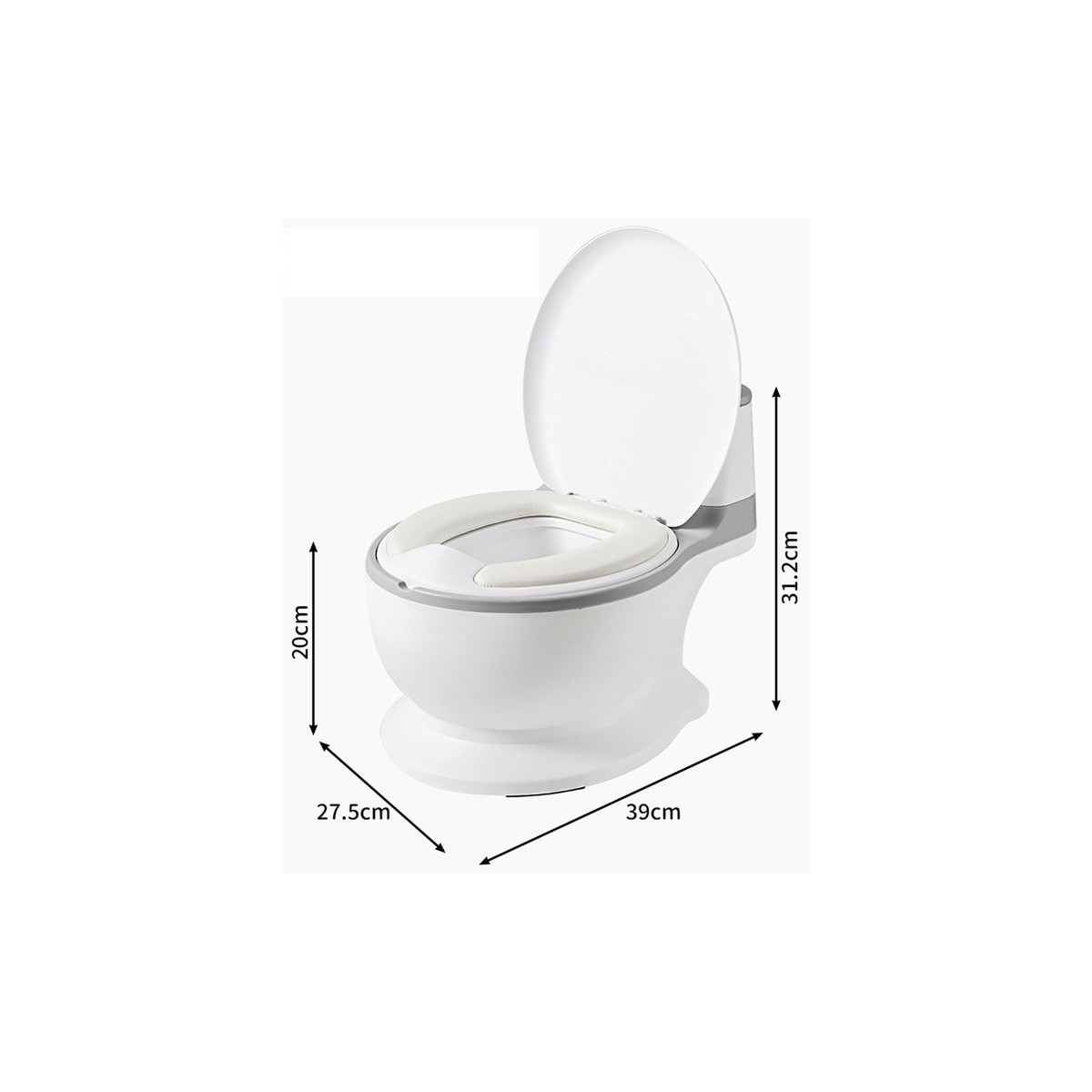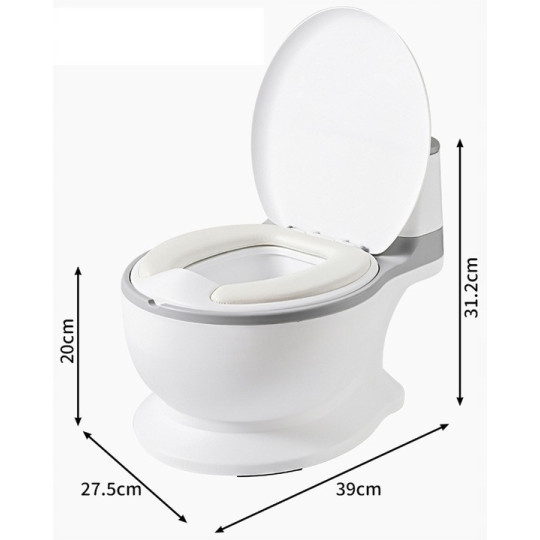 Nočník má tvar klasického WC, což pomáhá dětem zvyknout si na používání toalety.