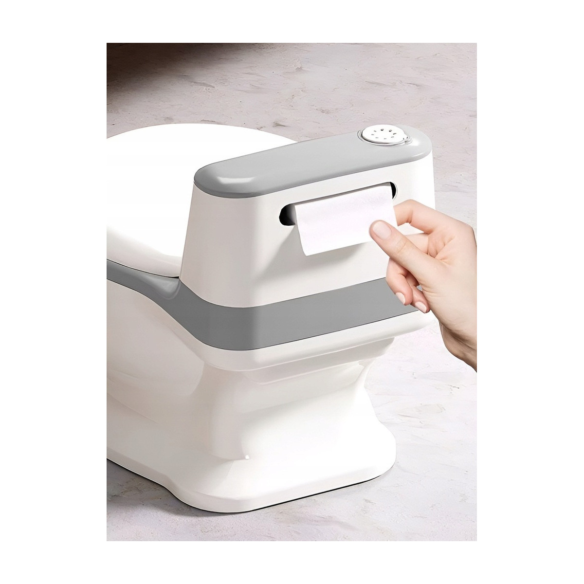 Nočník je vybaven také držákem na toaletní papír, který pomáhá dítěti učit se kompletní hygienický návyk.