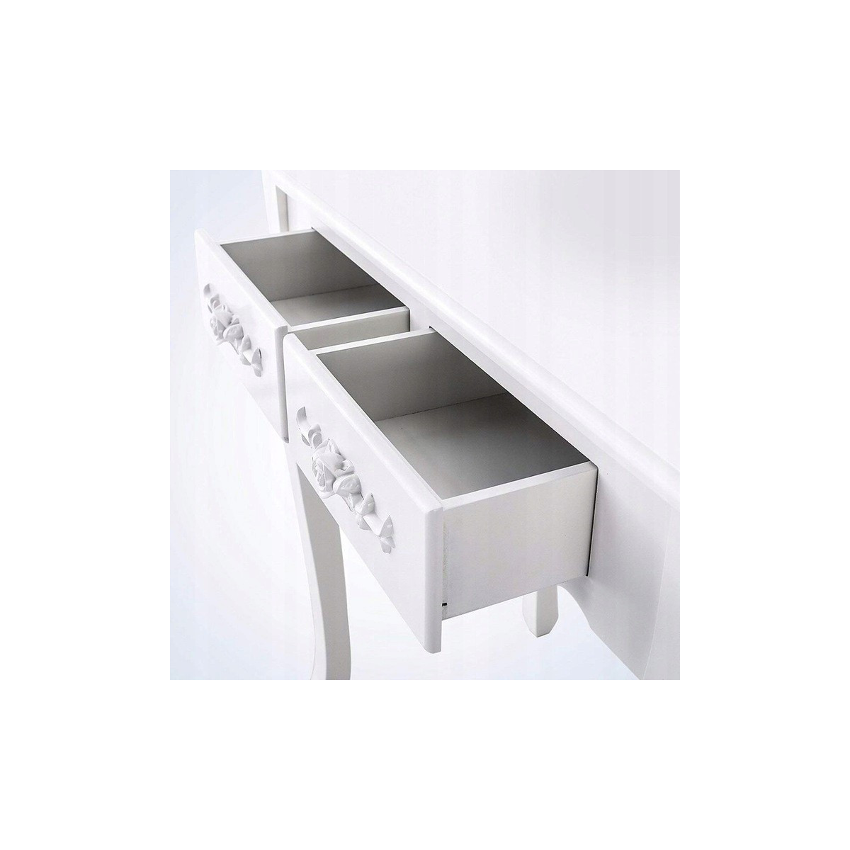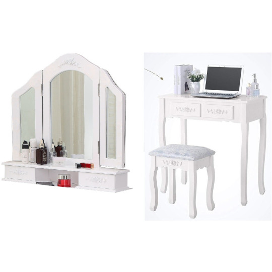 Toaletní stůl má 3 pohyblivá zrcadla, která lze v případě potřeby odmontovat i s celou konzolou a okamžitě použít toaletní stůl jako stůl nebo psací stůl.