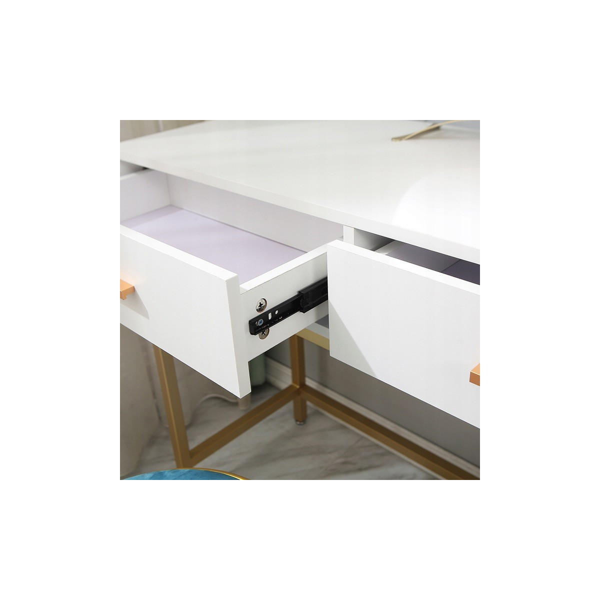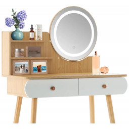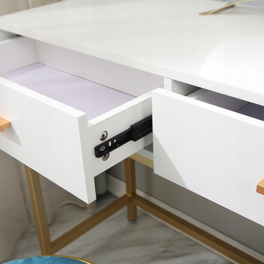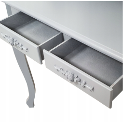 Toaletní stolek má 2 prostorné zásuvky, do kterých se vejdou všechny potřebné kosmetické potřeby a doplňky. Zásuvky jsou ideální i na uložení šperků.