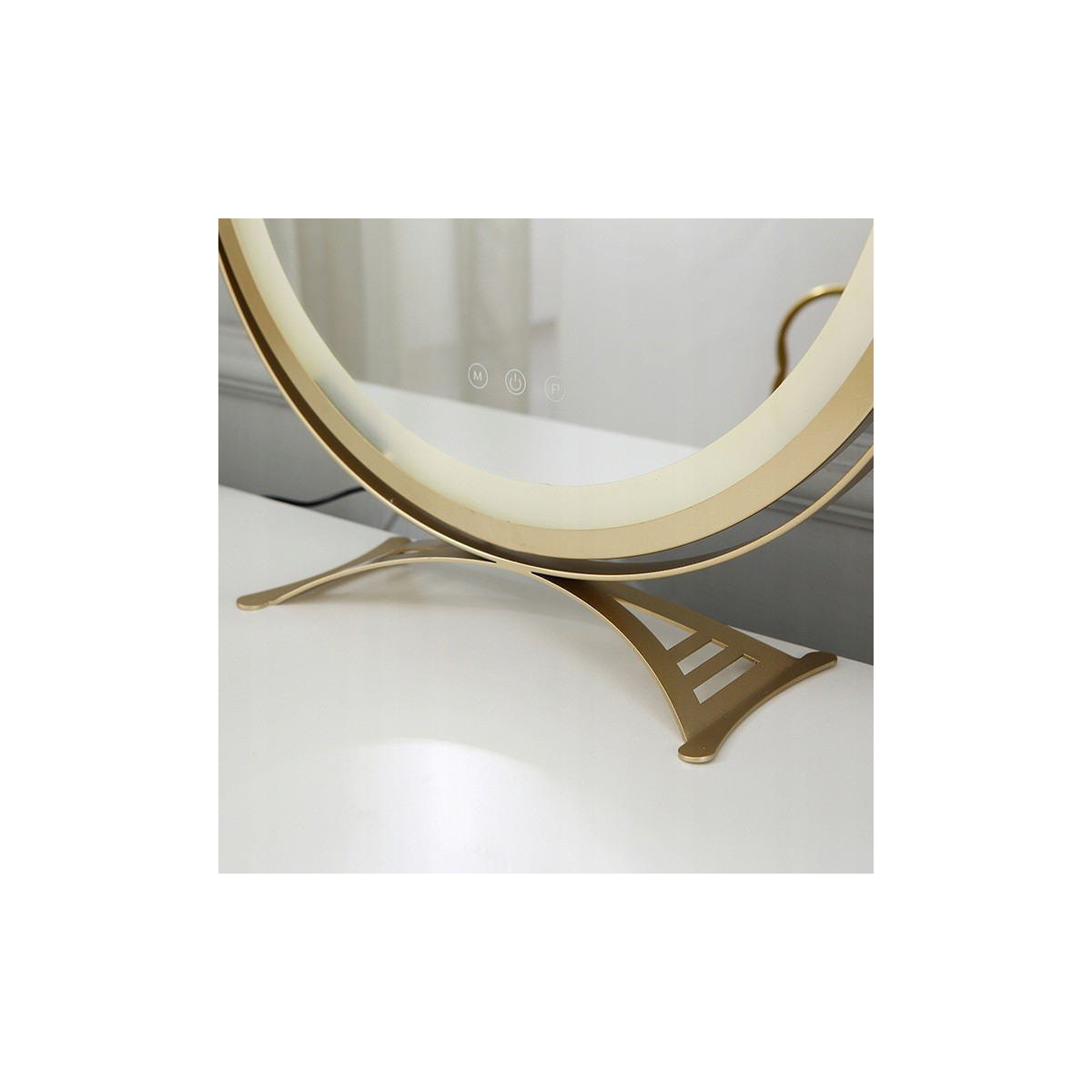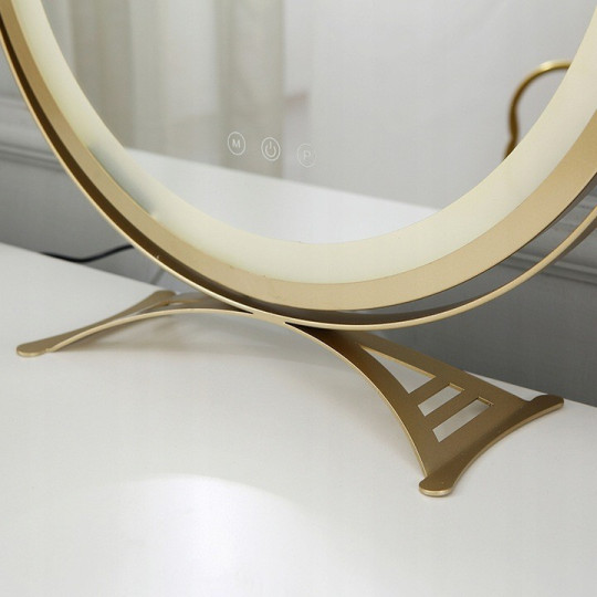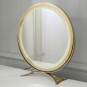 Toaletní stolek má kulaté pohyblivé zrcadlo s LED osvětlením s možností změny jeho barvy.
