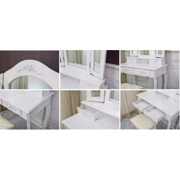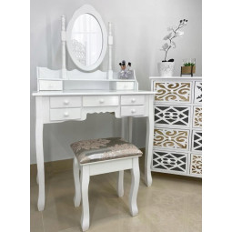 Krásný toaletní stůl na profesionální i amatérské použití pro dámu, která ocení pohodlí a eleganci ve svém domově. Vyrobeno s důrazem na každý, i ten nejmenší detail. Je to spojení stylu a nadčasové elegance. Dokonale se hodí do jakéhokoliv aranžmá. Díky svému vzhledu bude okouzlujícím doplňkem mnoha interiérů.