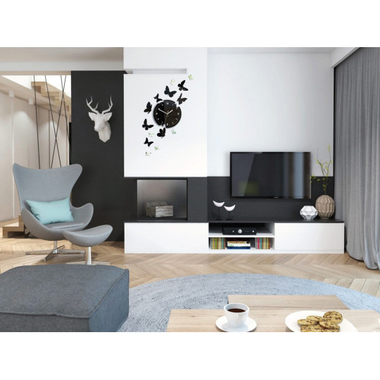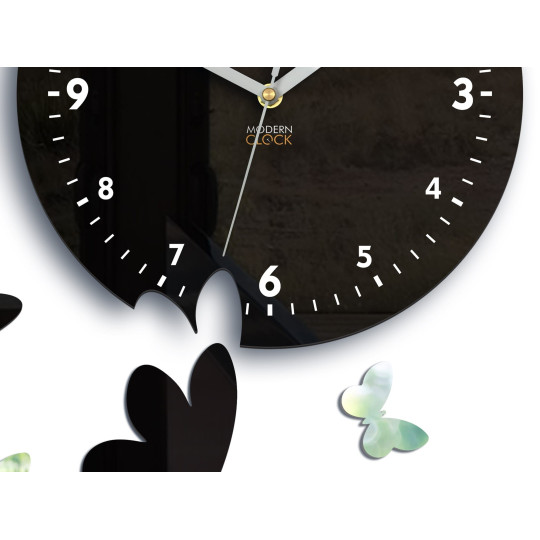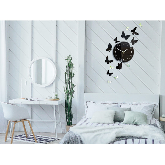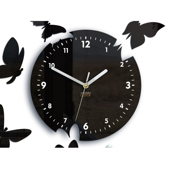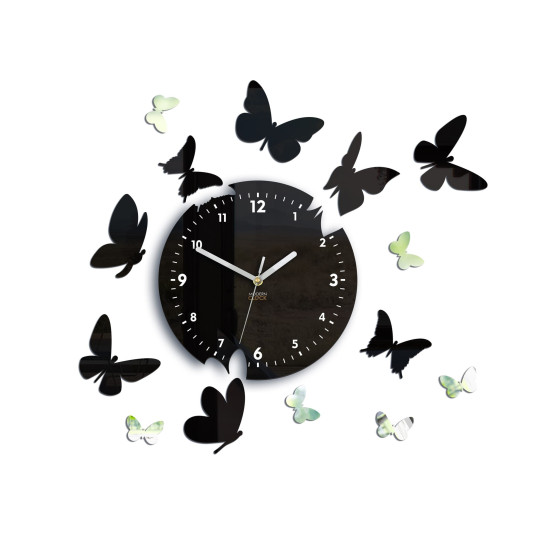 Nástěnné hodiny BUTTERFLIES z nejnovější kolekce, úplně jiná nabídka, která je zajímavou alternativou k tradičním hodinám. Ciferník má zajímavou potisk s klasickým označením hodin. Jeho sofistikovaný a promyšlený design z něj dělá doplněk, bez kterého se neobejde žádný obývací pokoj, pokoj pro teenagery či jídelna.