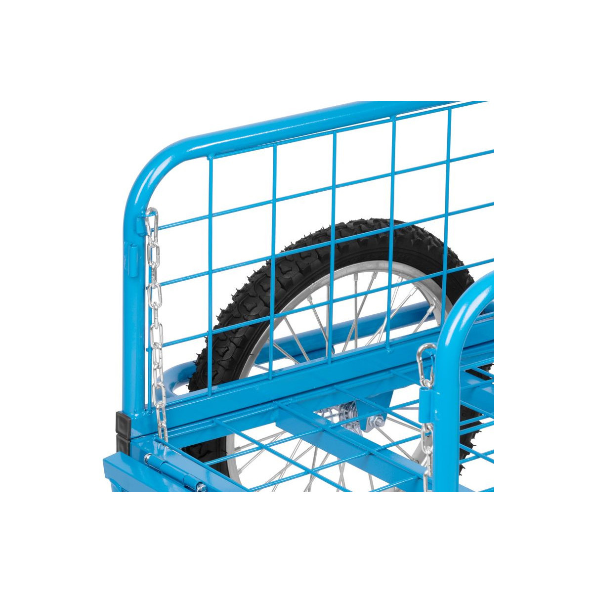 Nafukovací kola významně zvyšují komfort při používání – vozík se lehce pohybuje i po nerovném terénu, jako je tráva, štěrk nebo dlažba. Díky tomu ho bez problémů využiješ v zahradě, na dvoře, v dílně či skladu.
