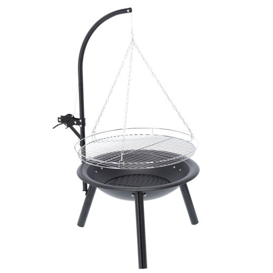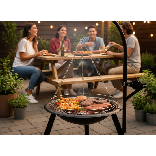 Visící gril s ohniskem o průměru 55 cm je ideálním řešením pro zahradu nebo chatu. Regulovatelný rošt umožňuje jednoduché nastavení výšky a plnou kontrolu nad teplotou během grilování. Stabilní konstrukce a pevné ohniště zajišťují bezpečné a pohodlné používání. Skvělá volba pro všechny milovníky tradičního grilování nad otevřeným ohněm.