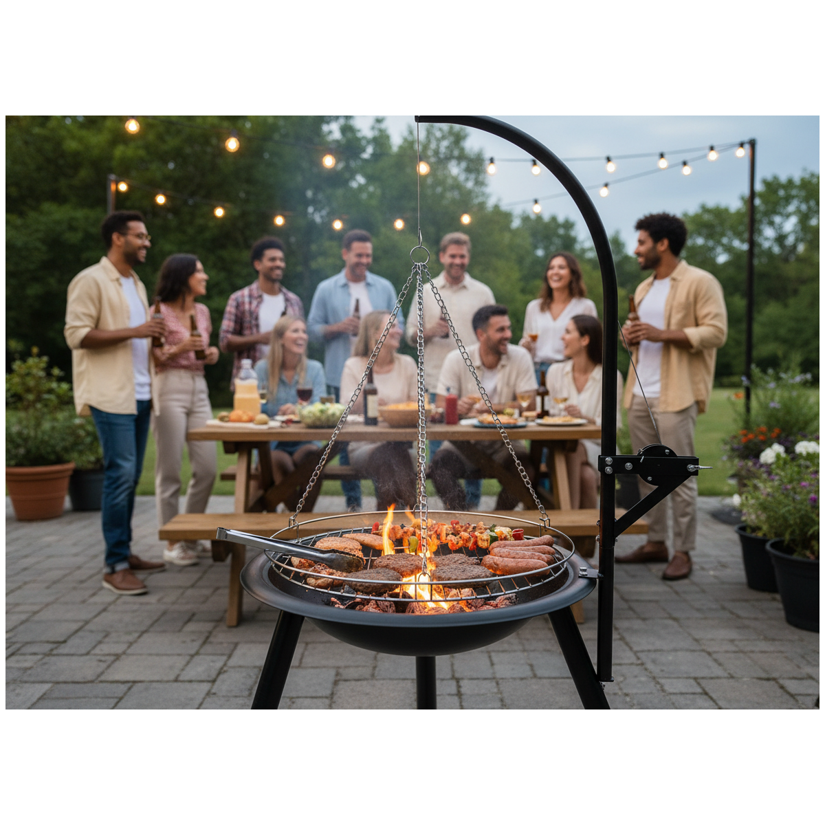 Závěsný nastavitelný gril s ohništěm 55 × 100 cm přináší jedinečný způsob přípravy jídel pod širým nebem. Kombinuje atmosféru klasického ohniště s praktičností moderního řešení. Díky závěsnému systému a nastavitelné výšce roštu máte úplnou kontrolu nad intenzitou tepla a průběhem grilování.