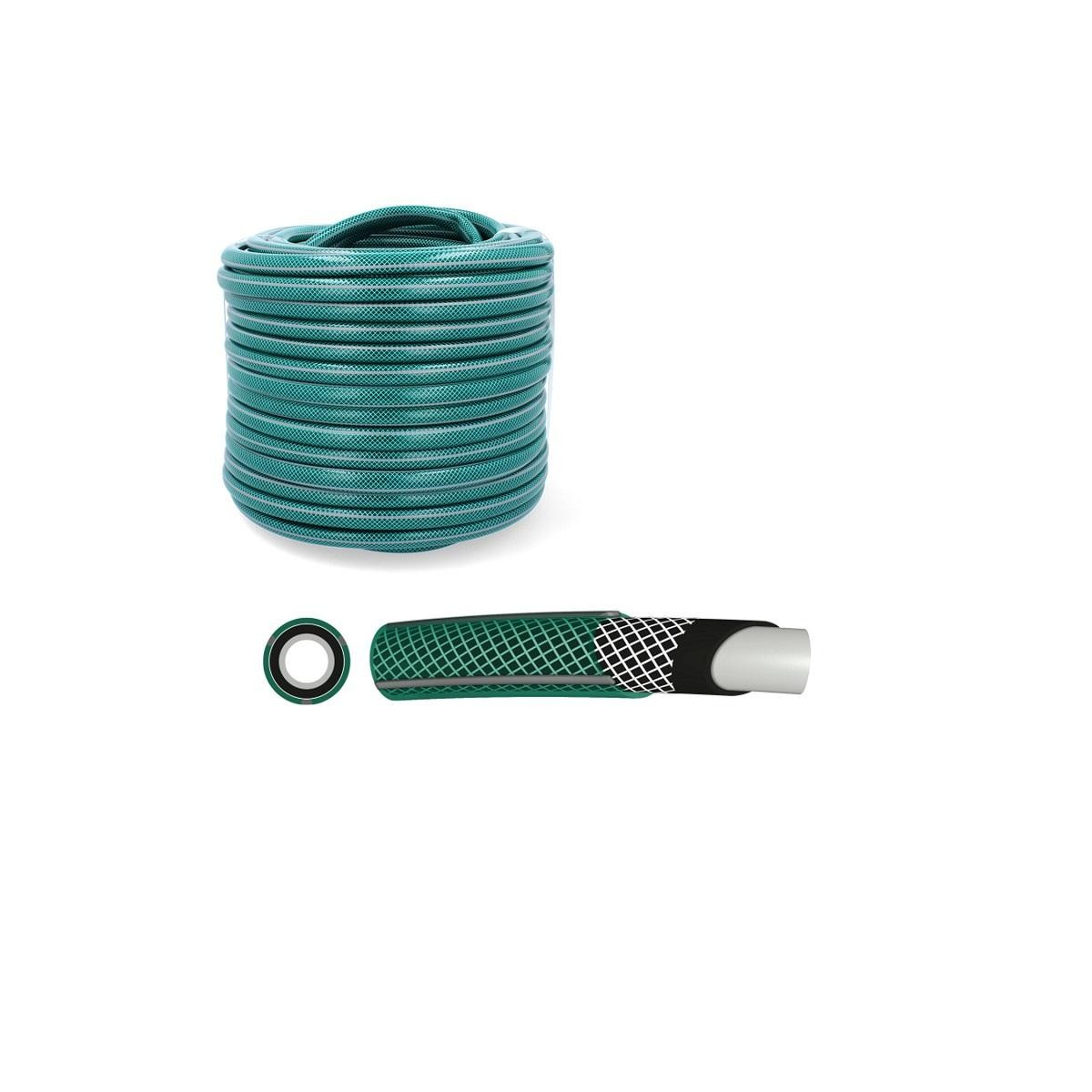 50 m prémiová zahradní hadice s průměrem 1. 4-vrstvové kabely z flexibilního PVC na bázi suspenzního polyvinylchloridu, tereftalátu a dalších komponentů, navíc vyztužené textilním obalem. Výrobek je určen k čerpání vody s pracovním tlakem 8 bar (při 20 °C), trhací tlak nad 24 bar (při 20 °C). Teplotní rozsah od -10 °C do +60 °C.