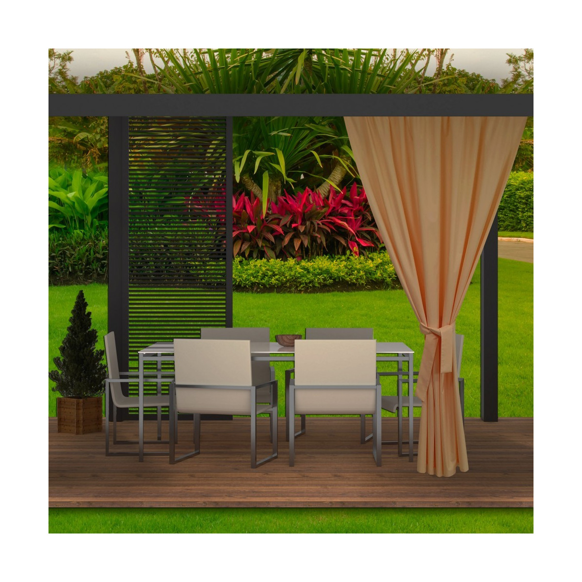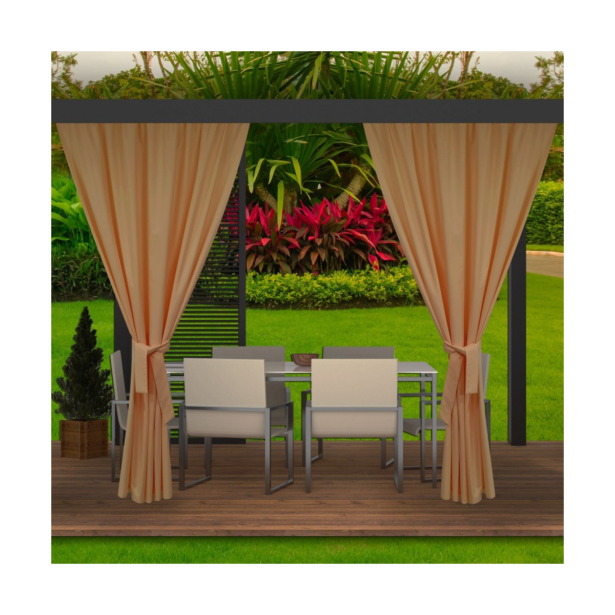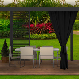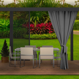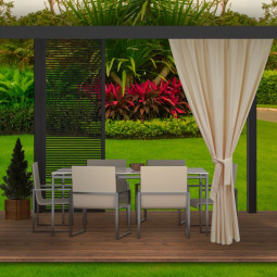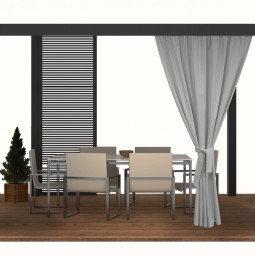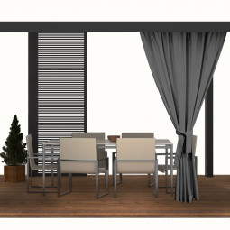 Během teplých letních a jarních dní rádi trávíme dny venku, abychom si užili odpočinek s rodinou. Čím dál častěji se rozhodujeme pro koupi altánů a dalšího zahradního nábytku. Naše zahradní závěsy se postarají o jejich správné nastavení. Dodávají nejen šarm, ale mají i množství dalších výhod, například praktických. Venku jsou naše sedadla a stolky více vystaveny nečistotám. Díky voděodolnosti nás terasové závěsy ochrání před deštěm. Jsou odolné vůči slunečnímu záření, což zajišťuje, že jejich barvy na silném slunci nevyblednou.