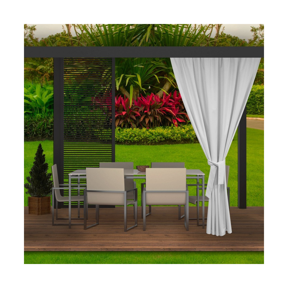 Během teplých letních a jarních dní rádi trávíme dny venku, abychom si užili odpočinek s rodinou. Čím dál častěji se rozhodujeme pro koupi altánků a dalšího zahradního nábytku. Naše zahradní závěsy se postarají o jejich správné uspořádání. Dodávají nejen šarm, ale mají také řadu jiných výhod, například praktických. Venku jsou naše sedadla a stolky více vystavena špíně. Díky voděodolnosti nás terasové závěsy ochrání před deštěm. Jsou odolné vůči slunečnímu záření, takže jejich barvy na silném slunci nevyblednou.